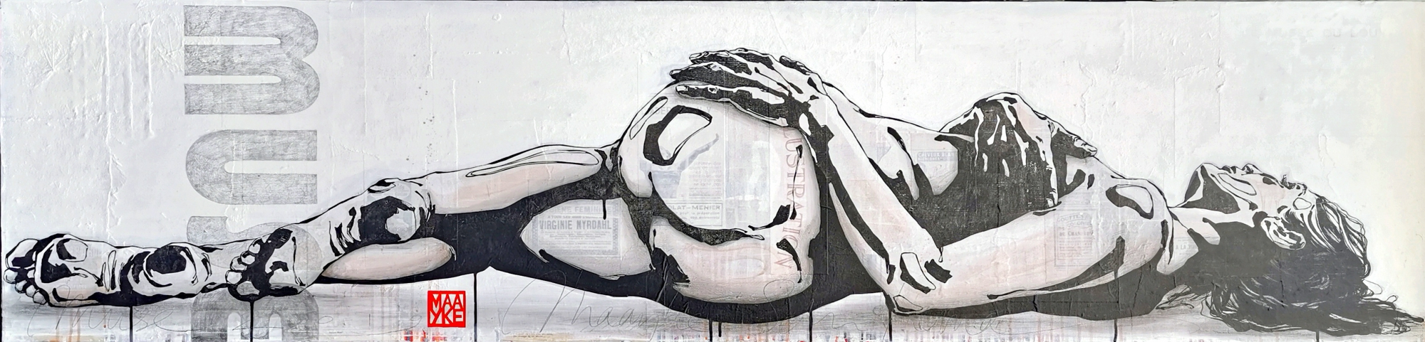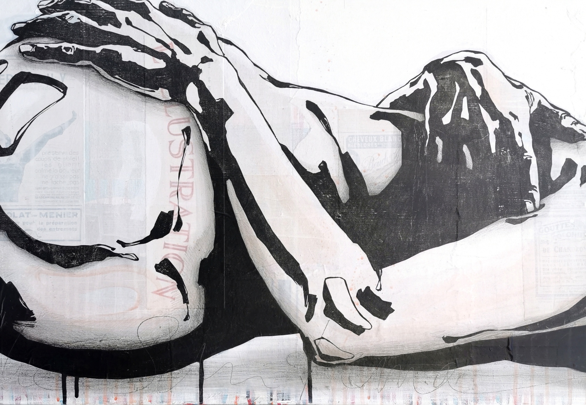 Technique:Linoleumdruk, collage, potlood en acryl op linnen