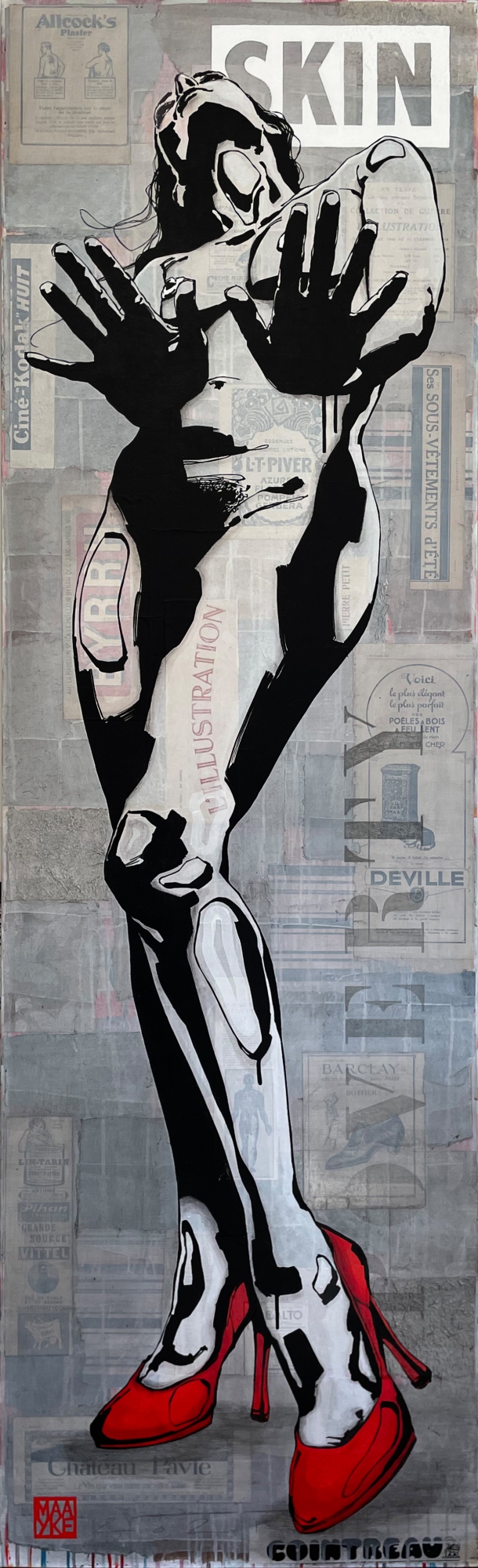 Technique:Linoleumdruk, collage, potlood en acryl op linnen