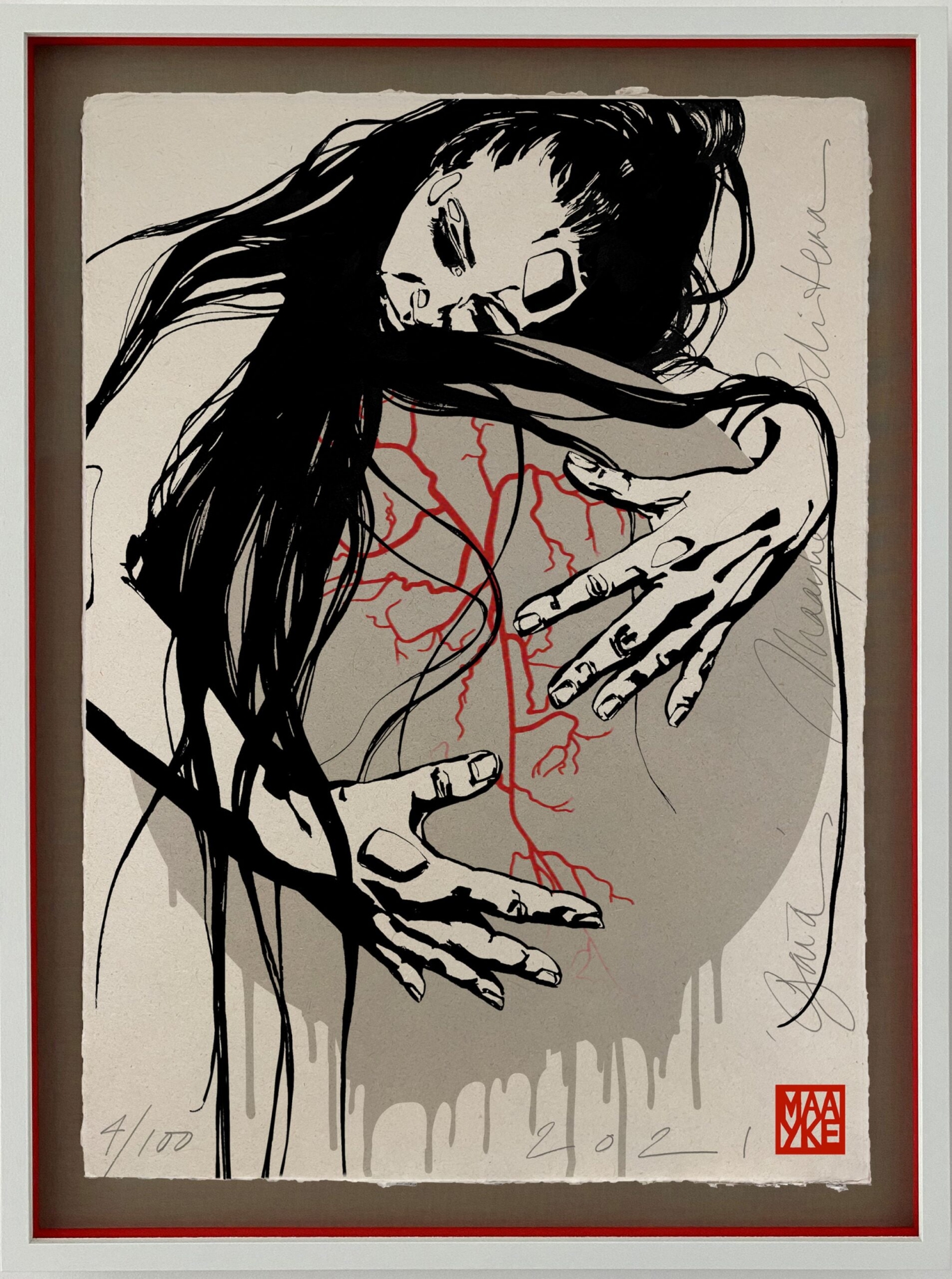 Box2021 – Save the planet Prijs : € 550,- Part of the content is still a surprise! 6 different works of art, edition of 100 The box measures approximately 54 x 40 cm and the works are printed on specially selected handmade paper. Separately numbered and signed. Maayke makes a lot of work that is based on current events. For the second year Maayke has put together a “collector’s box” especially for all her collectors. The Box2021 contains 6 different works of art that you can keep in the Box itself, but you can also hang them separately on the wall. All works are inspired by important themes of the past year. Together, the works read like a concise annual overview. Collectors who order “BOX2021” are the first to be eligible to order “BOX2022” next year and will receive an equally numbered copy. Box2021 will be delivered before Christmas.