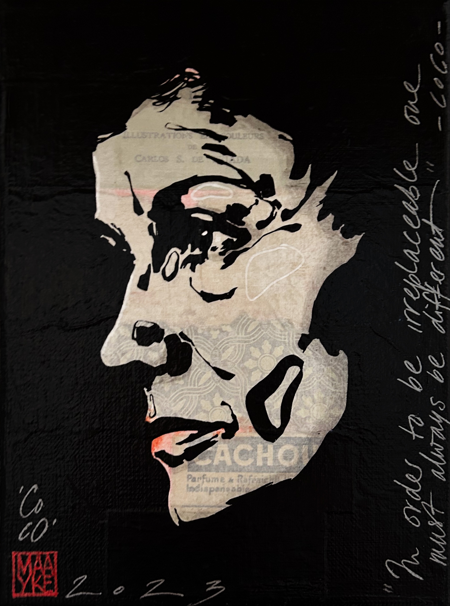 Technique:Linocut print on paper and collage on canvas