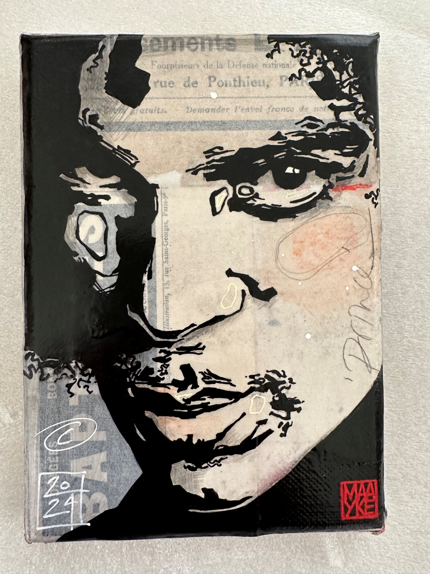Techniek:Linocut print on paper and collage on canvas
