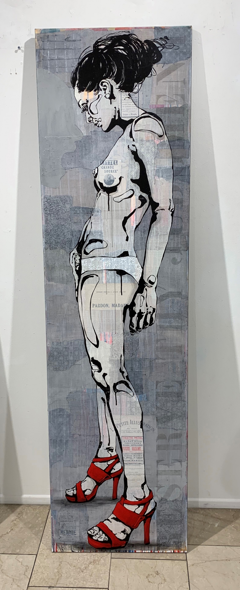 Techniek:Linoleumdruk, collage, potlood en acryl op linnen